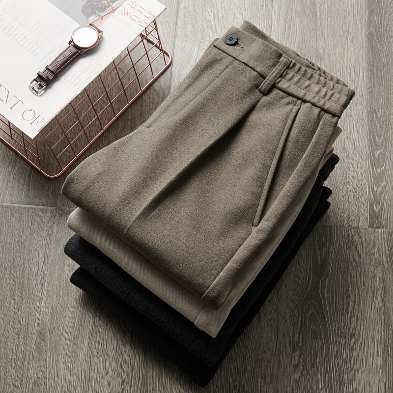 罗蒙加绒加厚男士休闲裤商务休闲秋冬季新款弹力直筒西裤秋冬款