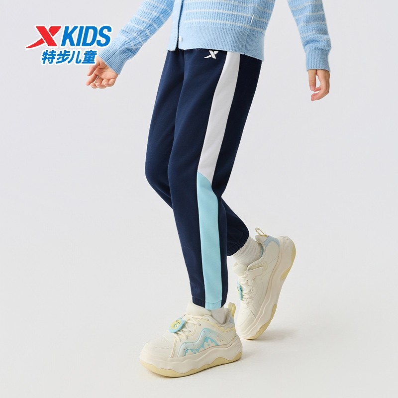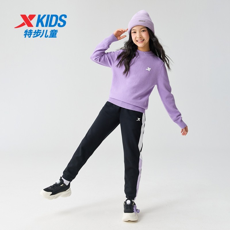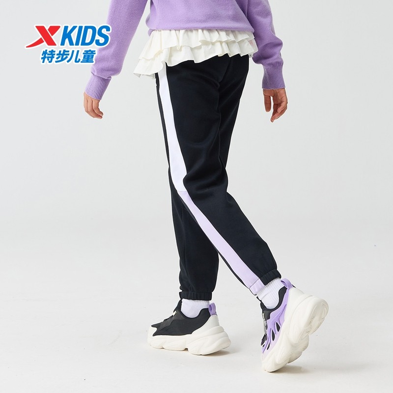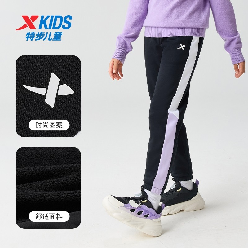 特步童装冬季款女童中大童运动休闲加绒保暖柔软亲肤儿童针织长裤