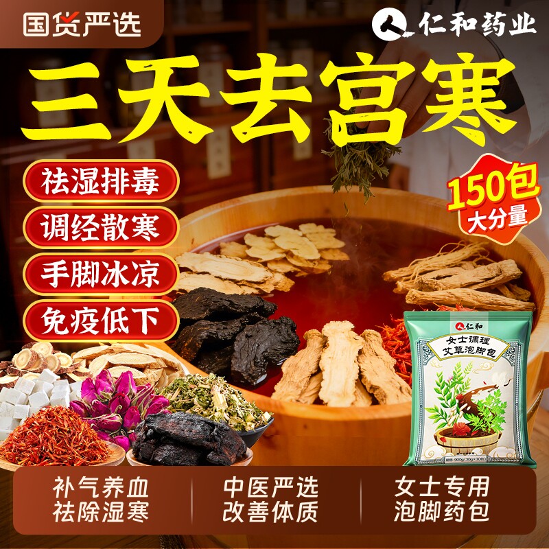 北京同仁堂艾草泡脚的药包去湿气祛排毒驱寒助睡眠足浴生姜花椒叶