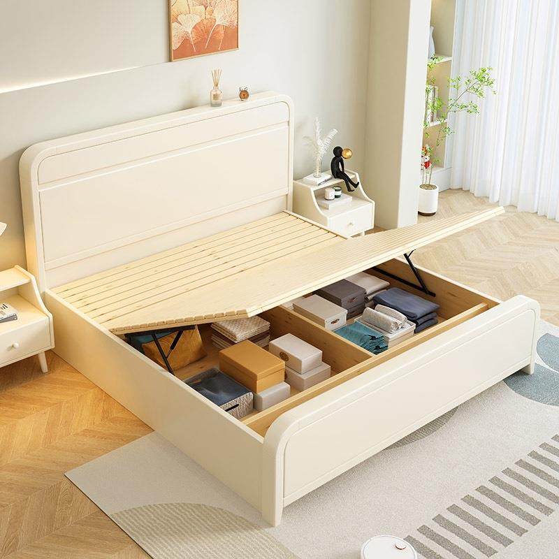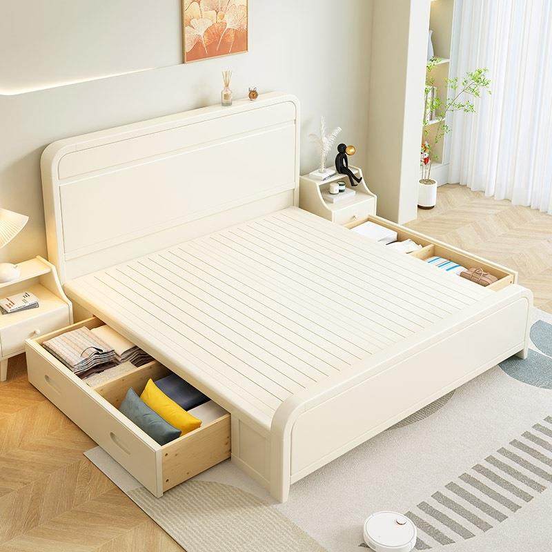 奶油风全实木床床1米8双人床白色家用大床主卧1米5储物床