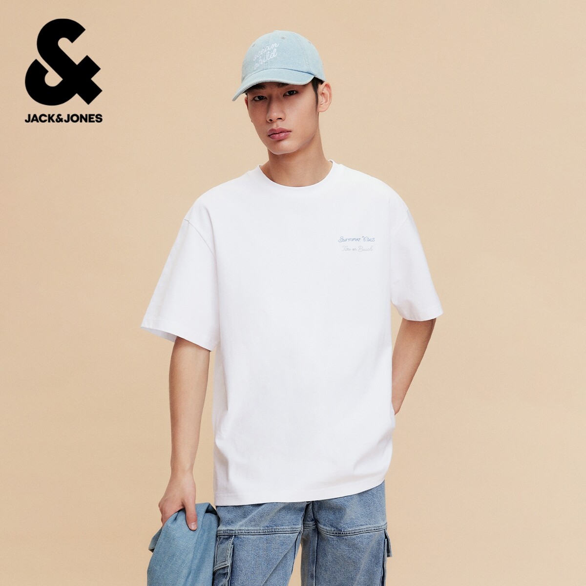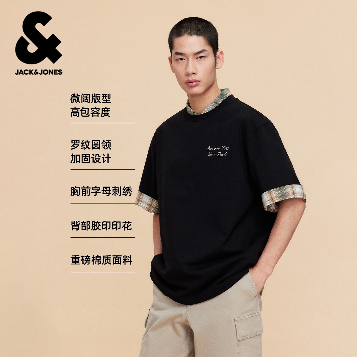 【春上新系列凉感】杰克琼斯男装新款纯色打底衫刺绣短袖男款T恤