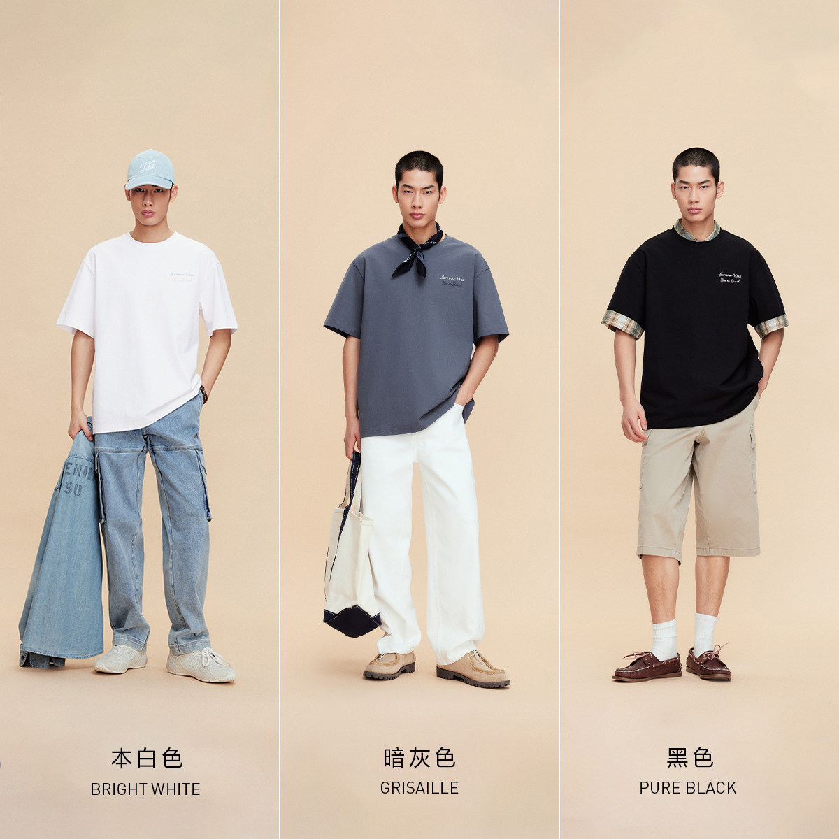 森马短袖T恤男纯棉打底衫修身长袖25夏季新款纯色内搭上衣简约白
