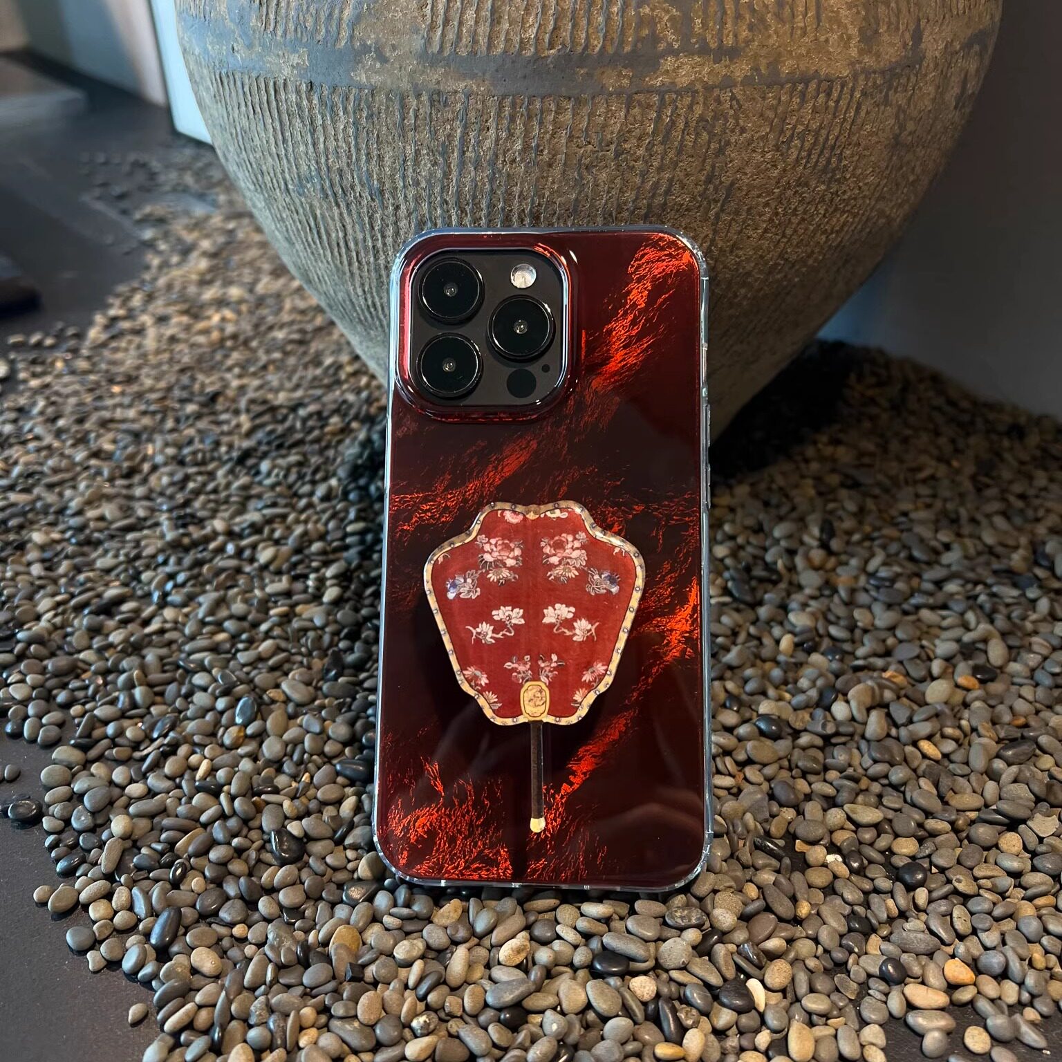 叶菽原创定制《红霜》团扇新中式国风小众高级感IMD双层适用苹果17/13/14/15/16promax支架红色iPhone手机壳