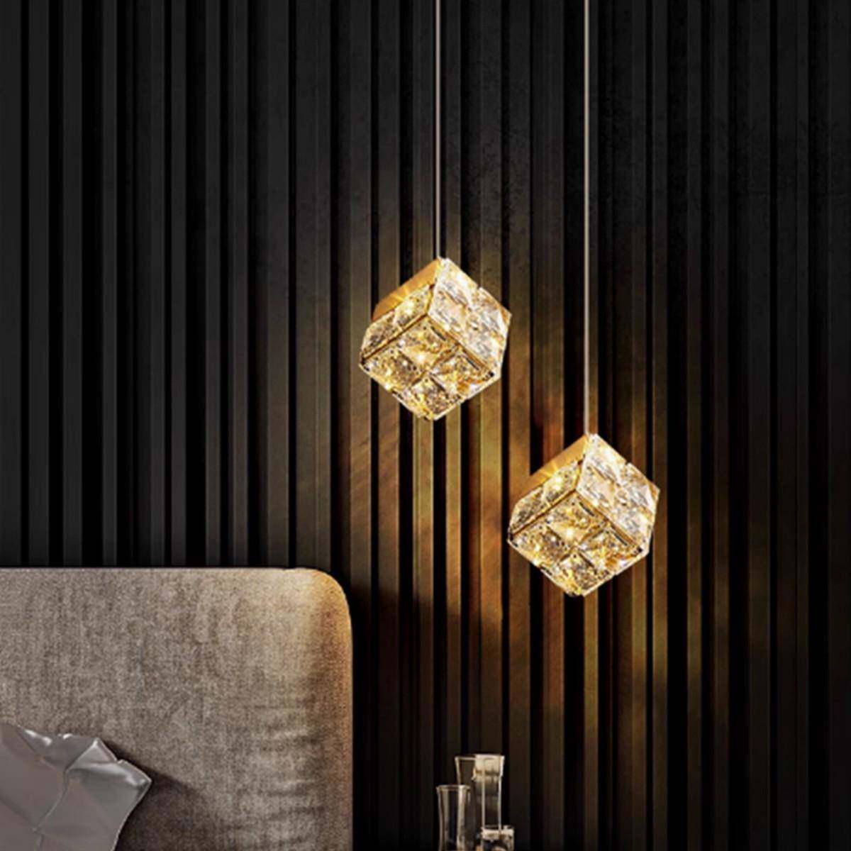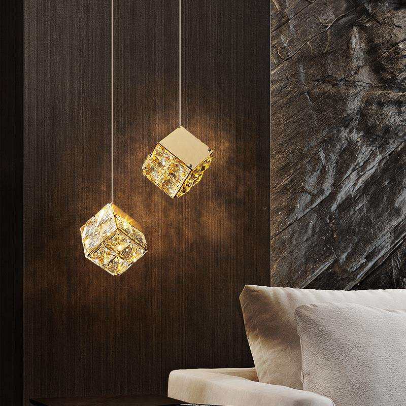 轻奢法式水晶后现代水晶魔方创意饭厅餐厅卧室吊床头轻奢卧室吊灯