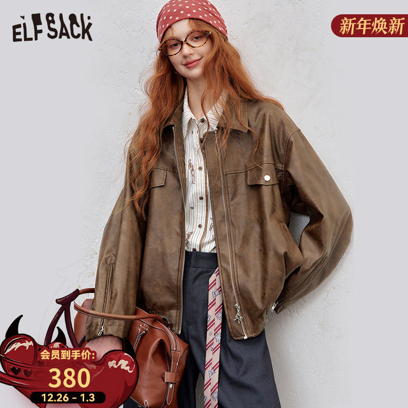 妖精的口袋复古咖棕PU皮外套女2025年秋季新款宽松甜酷机车皮衣
