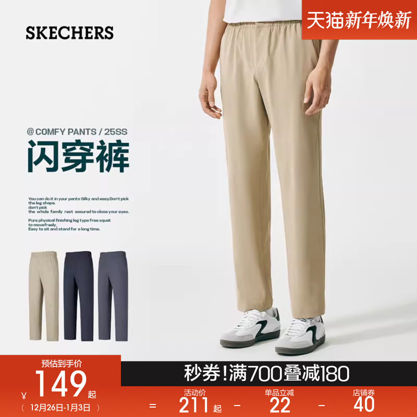 斯凯奇闪穿裤|2025秋冬男子舒适运动长裤百搭休闲弹力宽松直筒裤