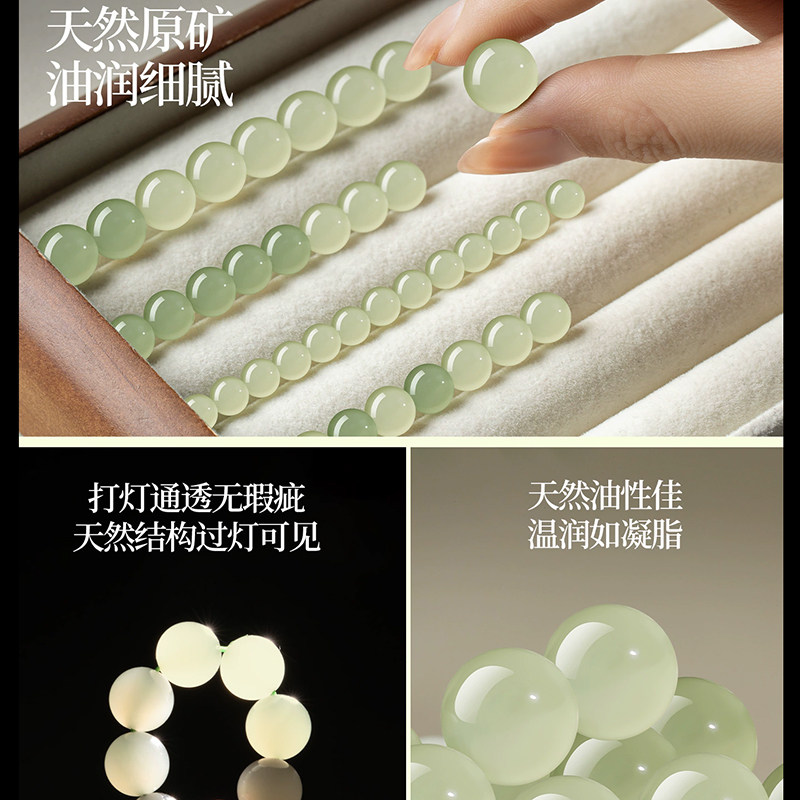 天然和田玉晴水手串女男青海料晴水青白玉玉石珠子串珠碧玉手链男