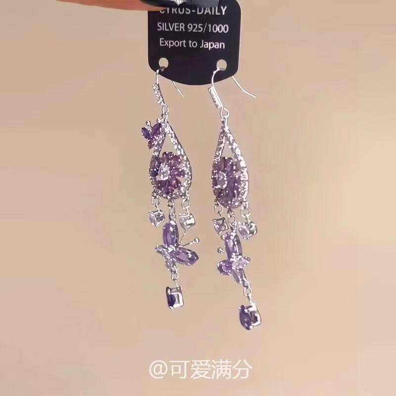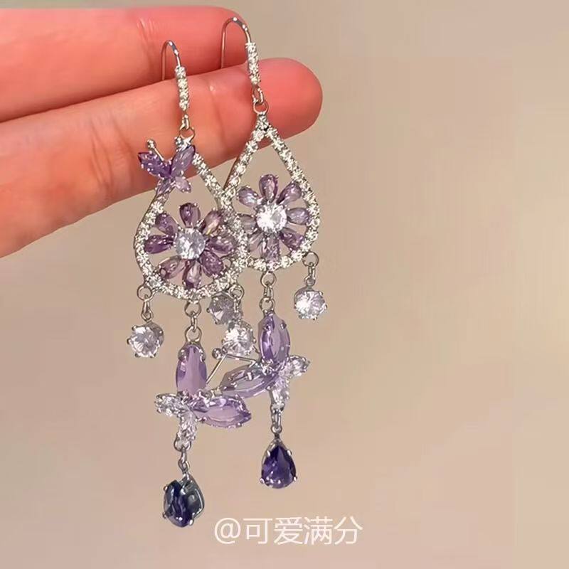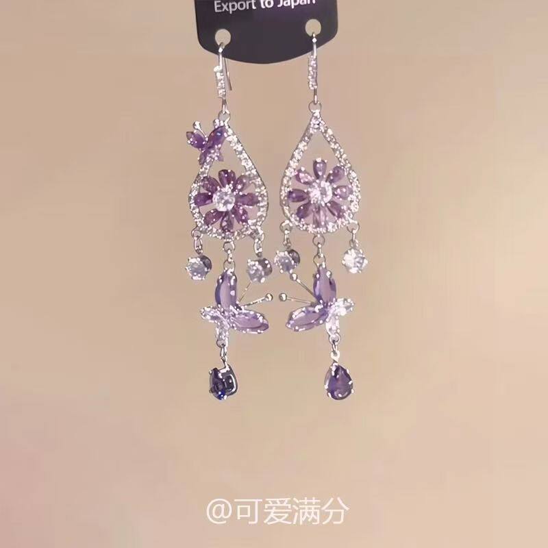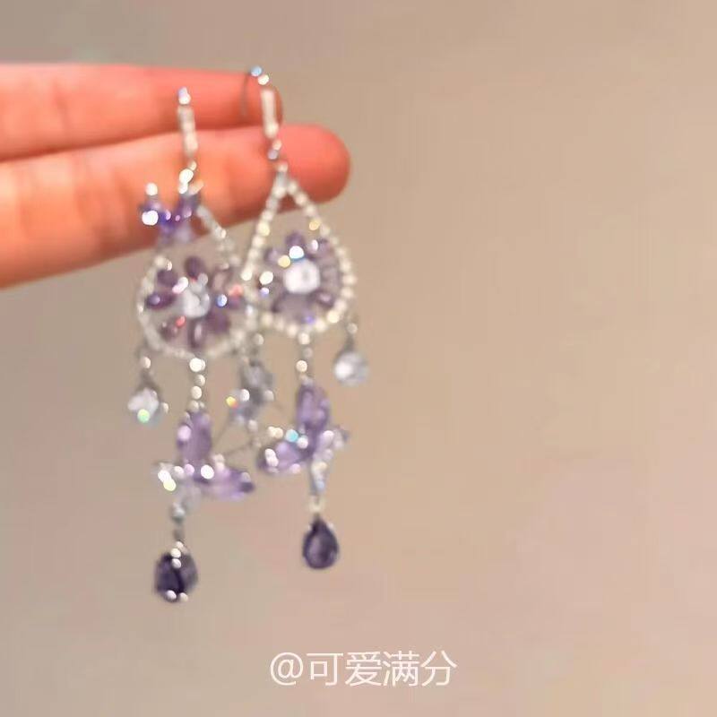 过年「紫雾梦铃」紫色蝴蝶捕梦网耳环法式爆闪波西米亚风精致耳饰