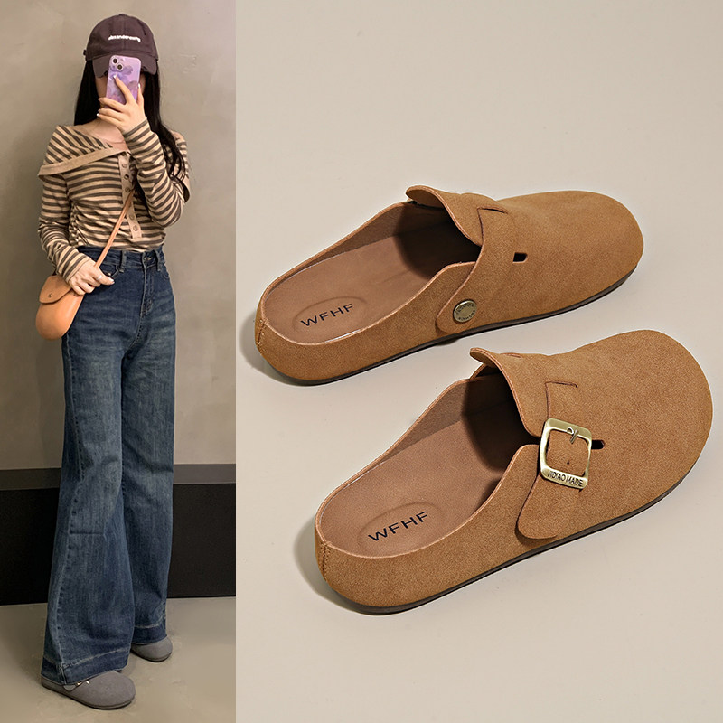 复古勃肯鞋女包头孕妇半拖外穿2025春秋新款一脚蹬懒人博肯鞋34码