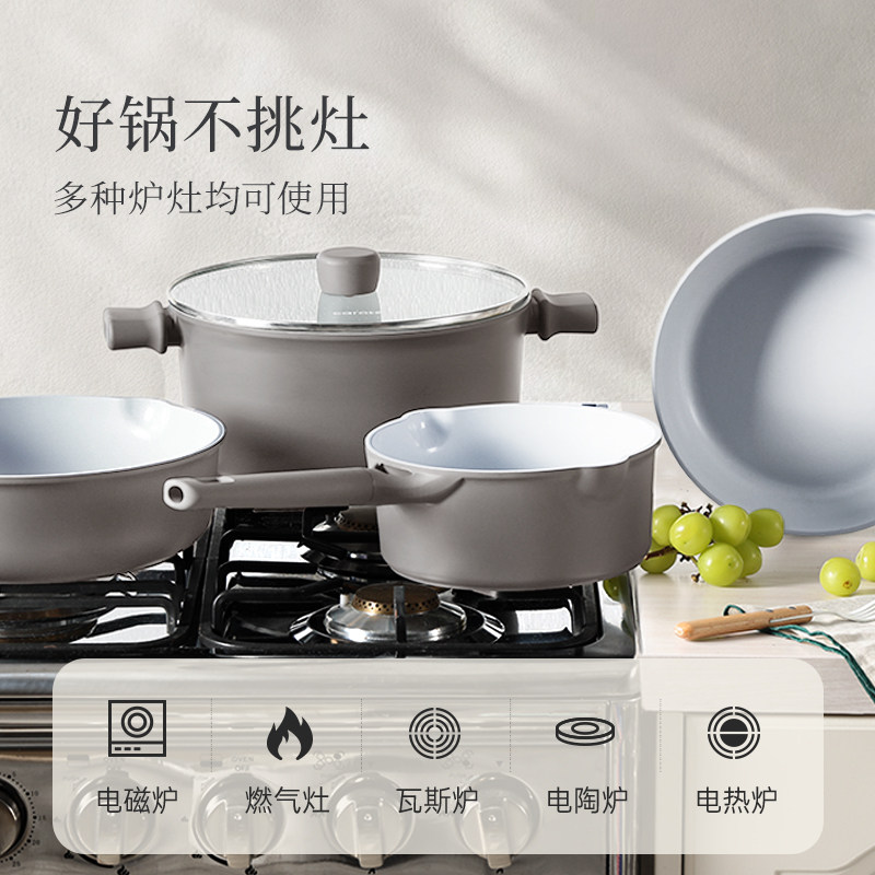 卡罗特陶瓷平底锅煎锅不粘锅家用煎饼煎蛋煎牛排电磁炉燃气灶专用