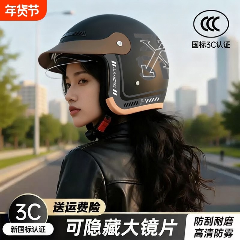 新国标3C认证电动摩托车头盔男女士冬季复古半盔四季透气轻便头盔