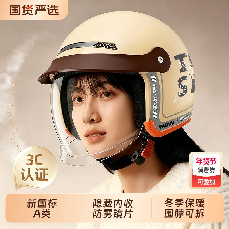 3C认证电动车头盔女士冬季保暖摩托电瓶车复古四季通用冬天安全帽