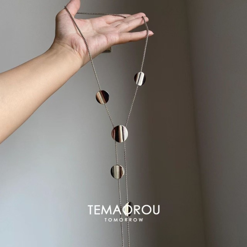 欧美ins风长款银色光面圆片流苏y字项链女轻奢气质简约个性可抽拉