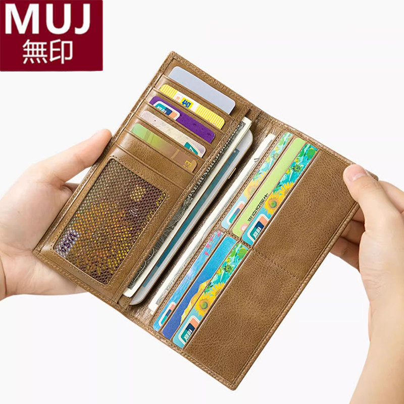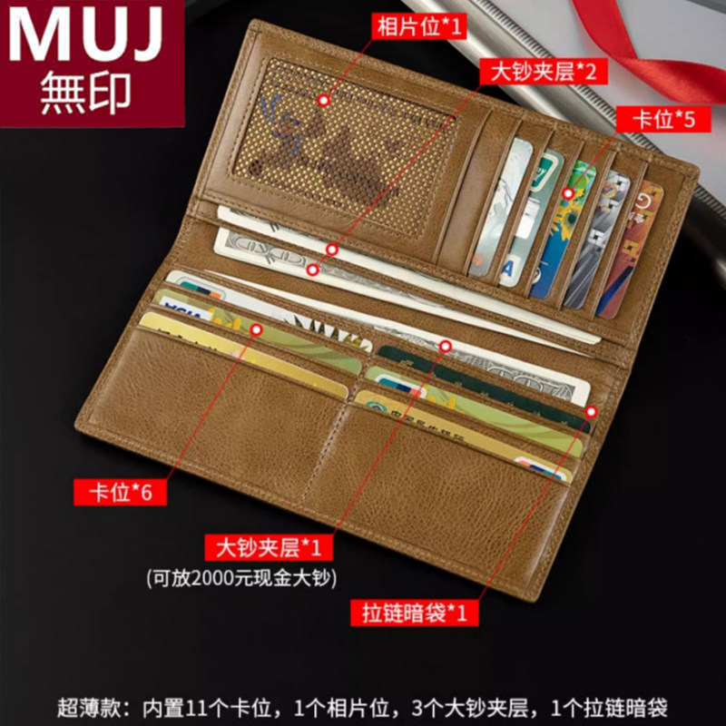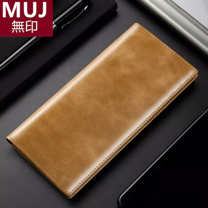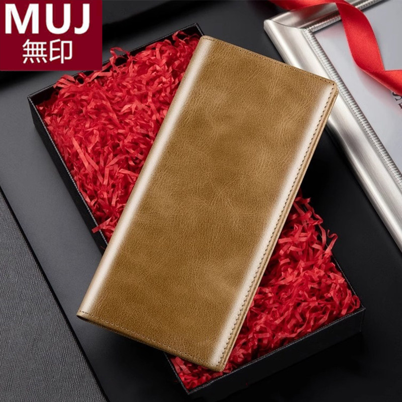 MUJ长款复古钱包防盗刷皮夹2025新款男式简约大容量钱夹超薄证件