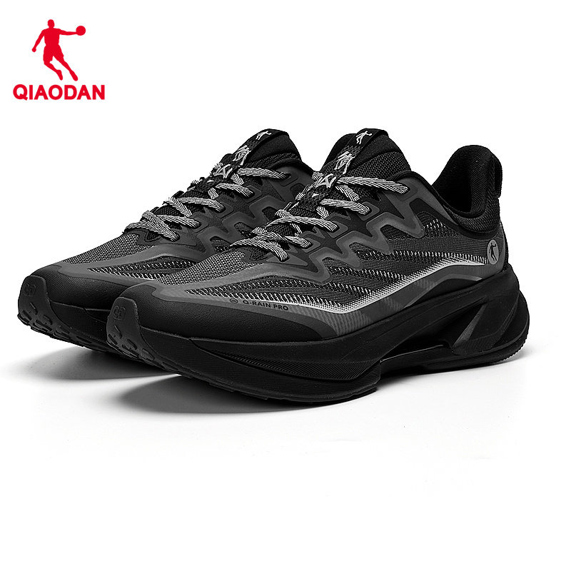 乔丹皮面加绒防水冬季运动鞋男鞋跑步鞋轻便软底减震休闲黑色跑鞋