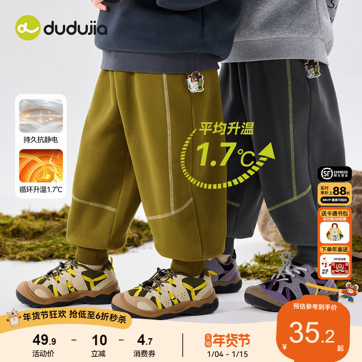 【抗静电】嘟嘟家男童裤子加绒秋冬儿童长裤冬款宝宝童装女童冬装