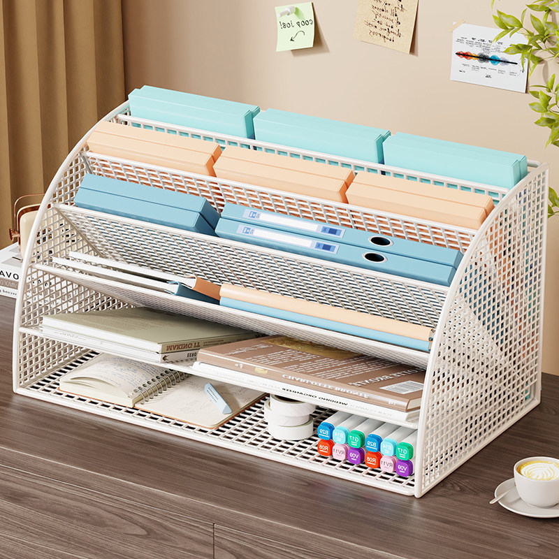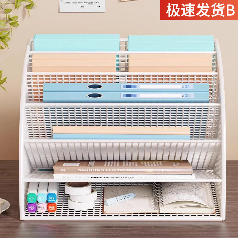 办公桌收纳置物架文件收纳盒办公用品文件架桌面书架多层大容量文件框文件夹A4纸资料档案整理架金属书立架