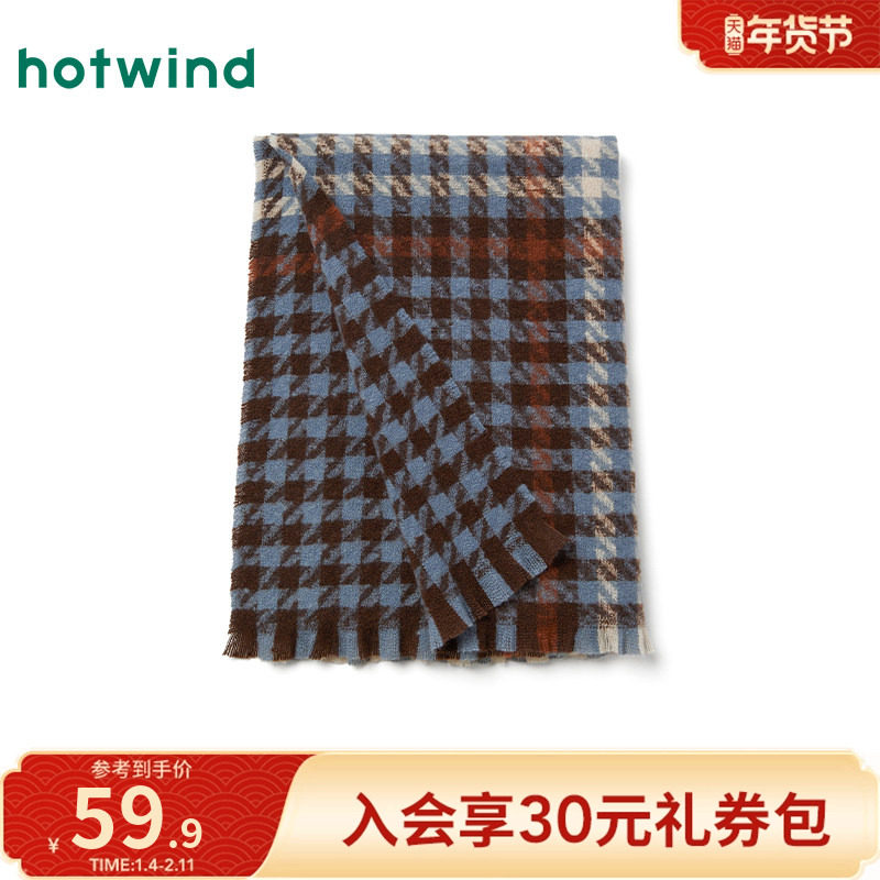 热风2025年冬季新款女士拼色千鸟格梭织流苏围巾简约气质
