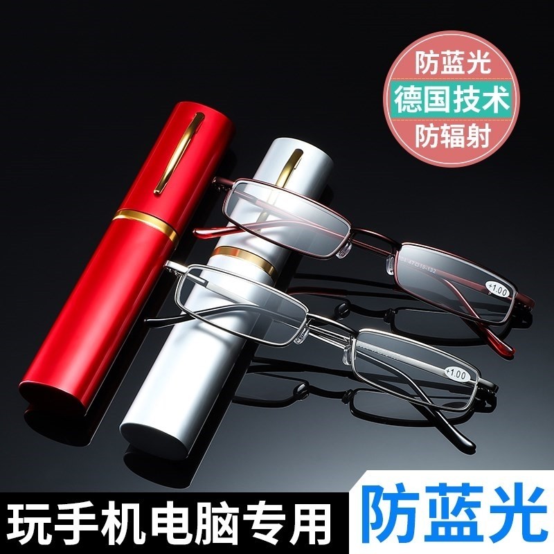 老花镜正品便携式进口男士日本迷你笔筒高清时尚超轻老人老光眼镜
