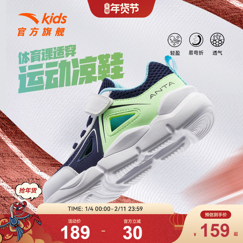 安踏儿童男童框子运动凉鞋夏季童鞋男宝小童透气宝宝网面跑鞋板鞋