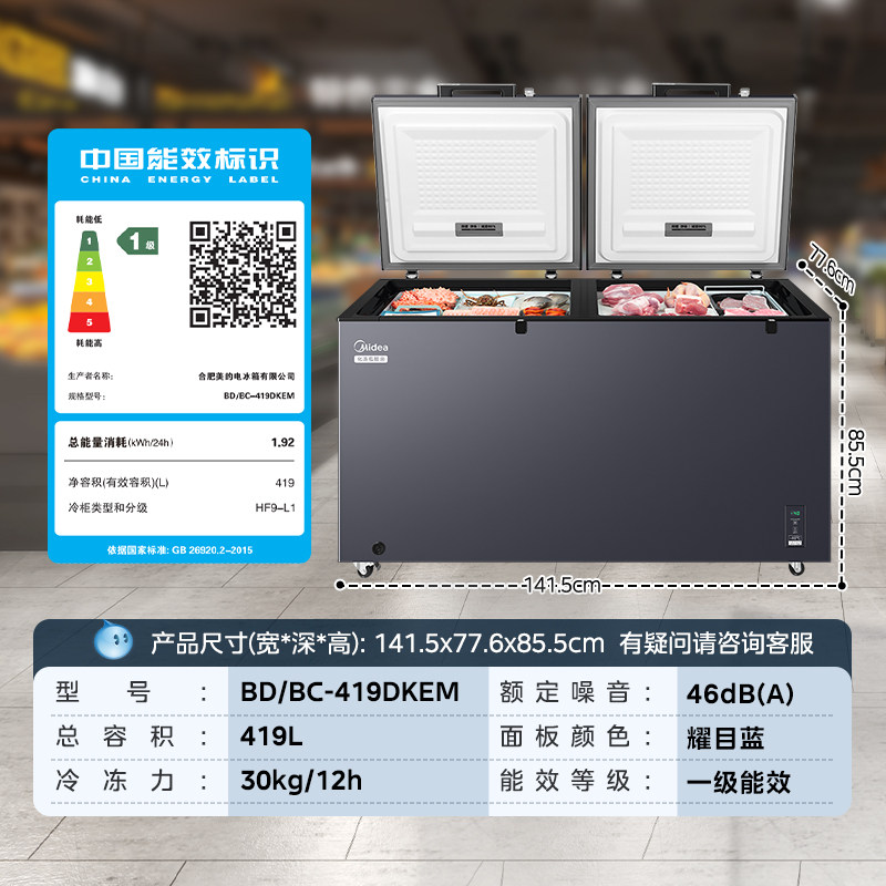 【新品】美的419升冷柜家用大容量-40℃超低温商用冷藏冷冻冰柜