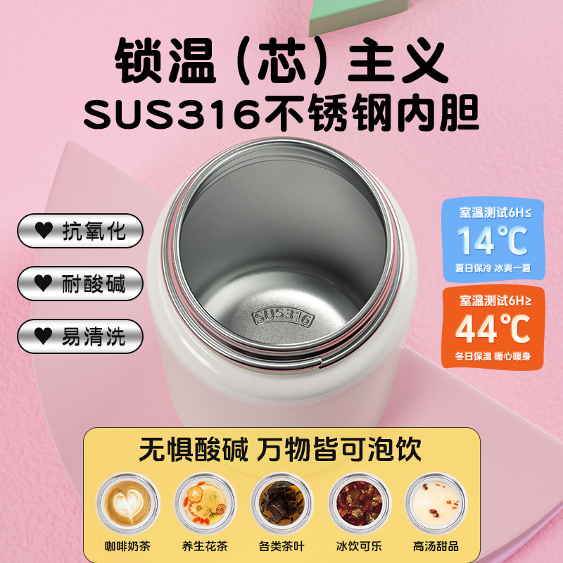 bablov保温杯女生小巧便携2025新款高颜值水杯成人带杯盖情侣杯子