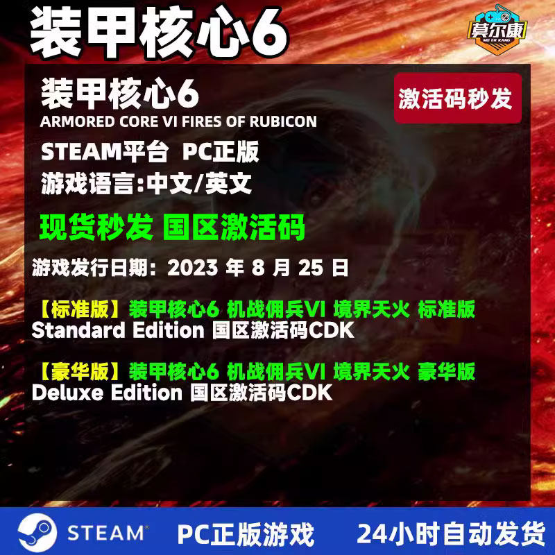 steam装甲核心6 激活码CDK 机战佣兵6 核心装甲6 机战佣兵VI 境界天火 兵VI ARMORED CORE VI PC游戏