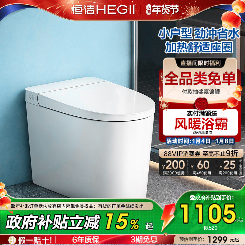【政府补贴】恒洁轻智能马桶半座圈加热抗菌釉面坐便器家用520