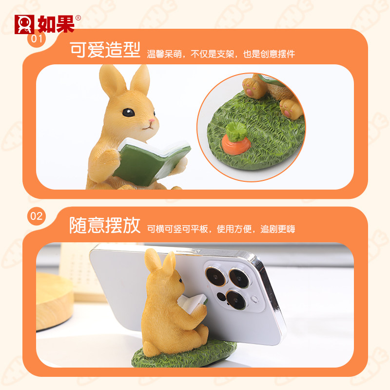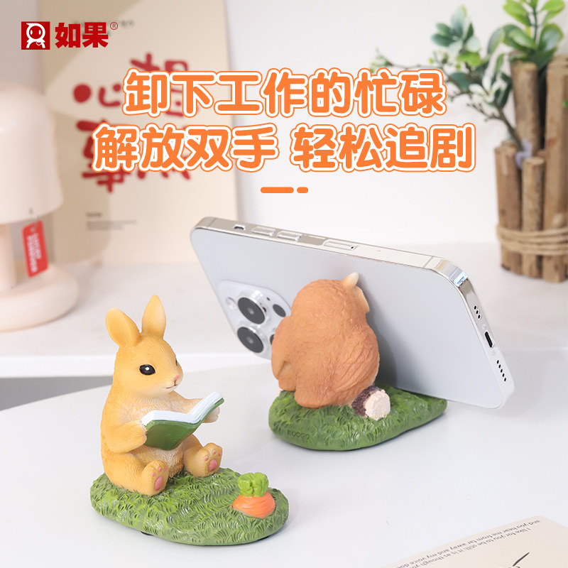 可爱卡通动物小兔子手机支架创意桌面摆件工位装饰解压礼物送女生