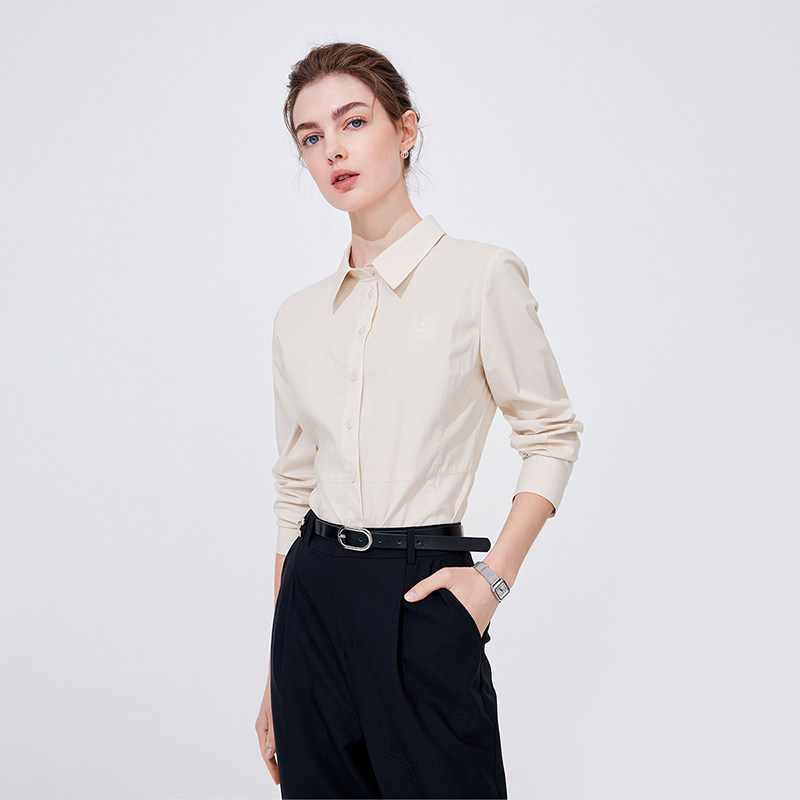 Navigare意大利小帆船春季长袖衬衫女蓝色修身寸衫休闲打底衬衣