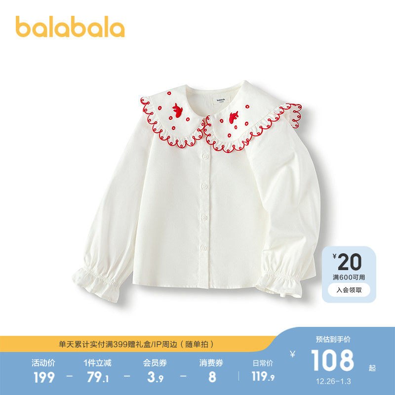 巴拉巴拉童装儿童长袖衬衫女童上衣2025新款春秋装绣花时尚百搭潮