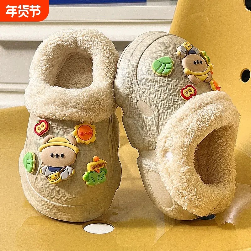 小童棉拖鞋冬季儿童家居鞋宝宝棉鞋包跟幼儿女童室内毛毛拖鞋秋冬