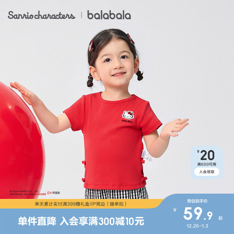 【HelloKittyIP】巴拉巴拉女童短袖T恤2025新款夏装镂空休闲上衣