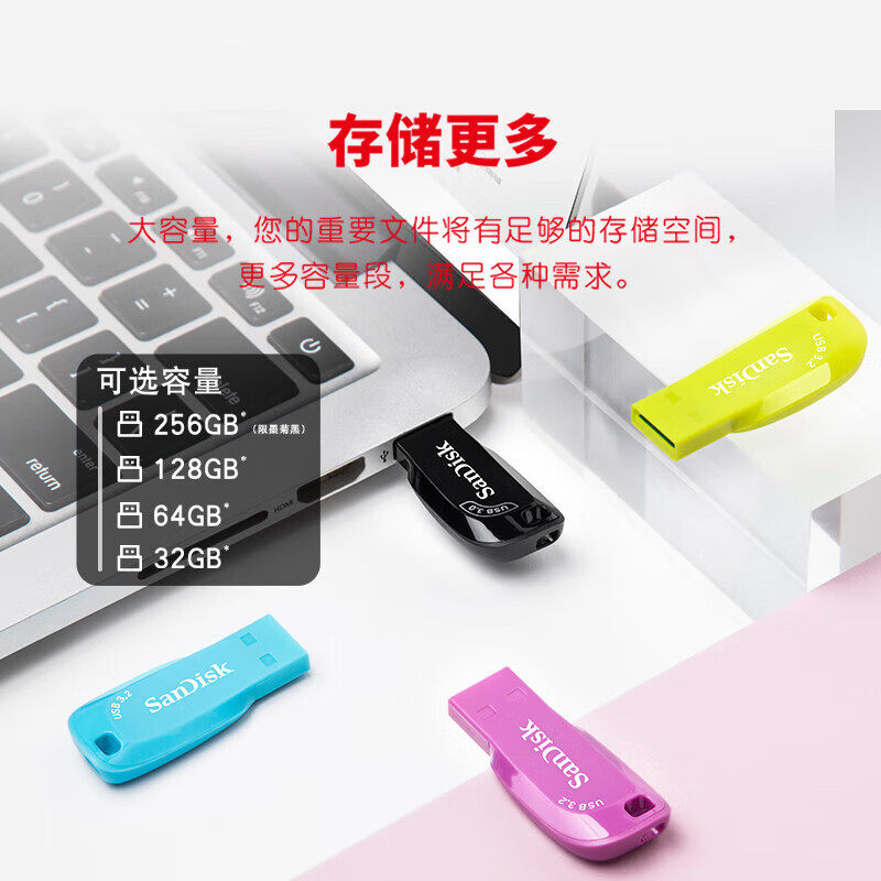 闪迪(SanDisk)USB3.2 U盘密码CZ410酷邃读速100MB/s小巧办公