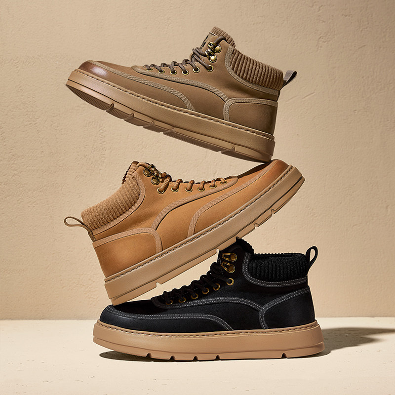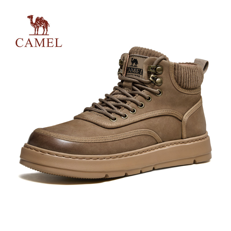 骆驼男鞋秋冬季牛皮革增高厚底马丁靴子复古休闲工装高帮板鞋男款