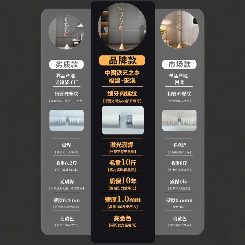 中古风落地卧室衣帽架铁艺复古衣服收纳架子家用客厅可移动挂衣架