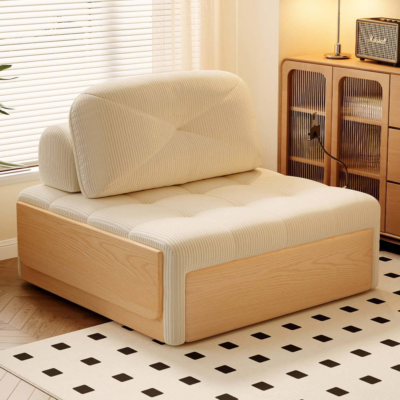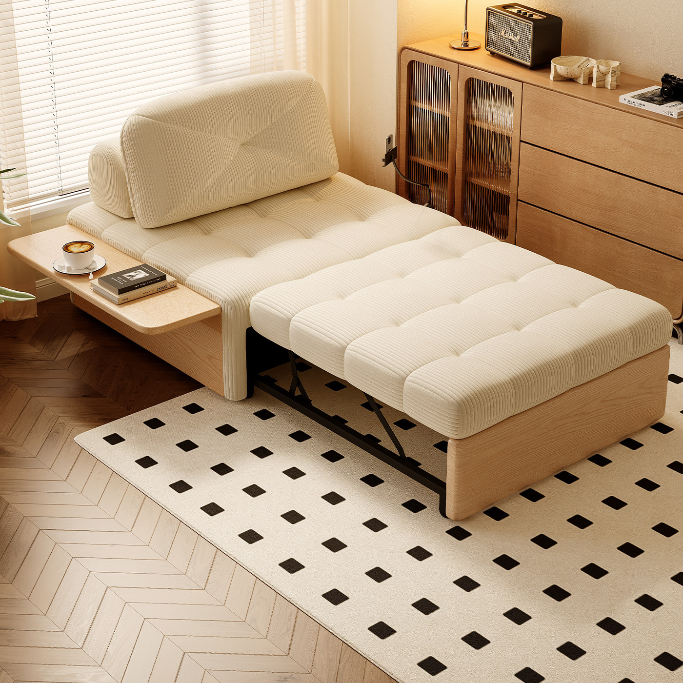 司朴小户型书房客卧一体两用沙发床奶油风直排伸缩双人布艺沙发床