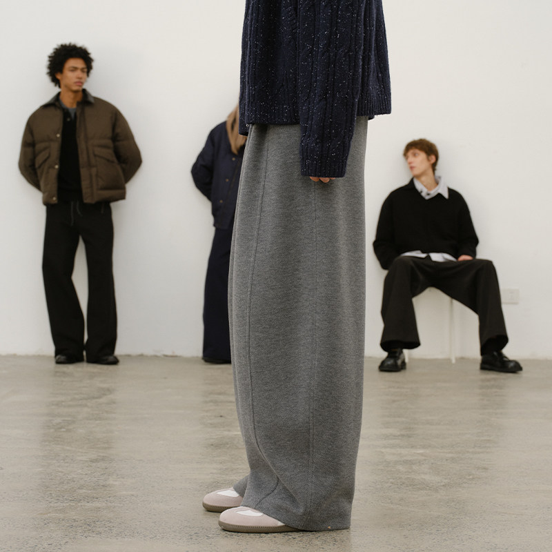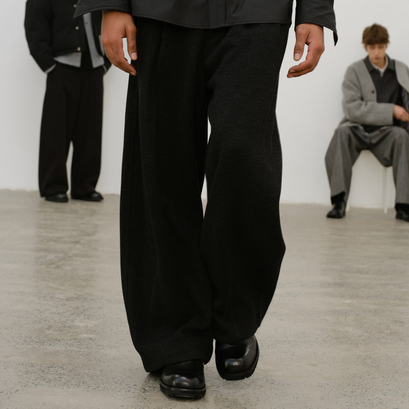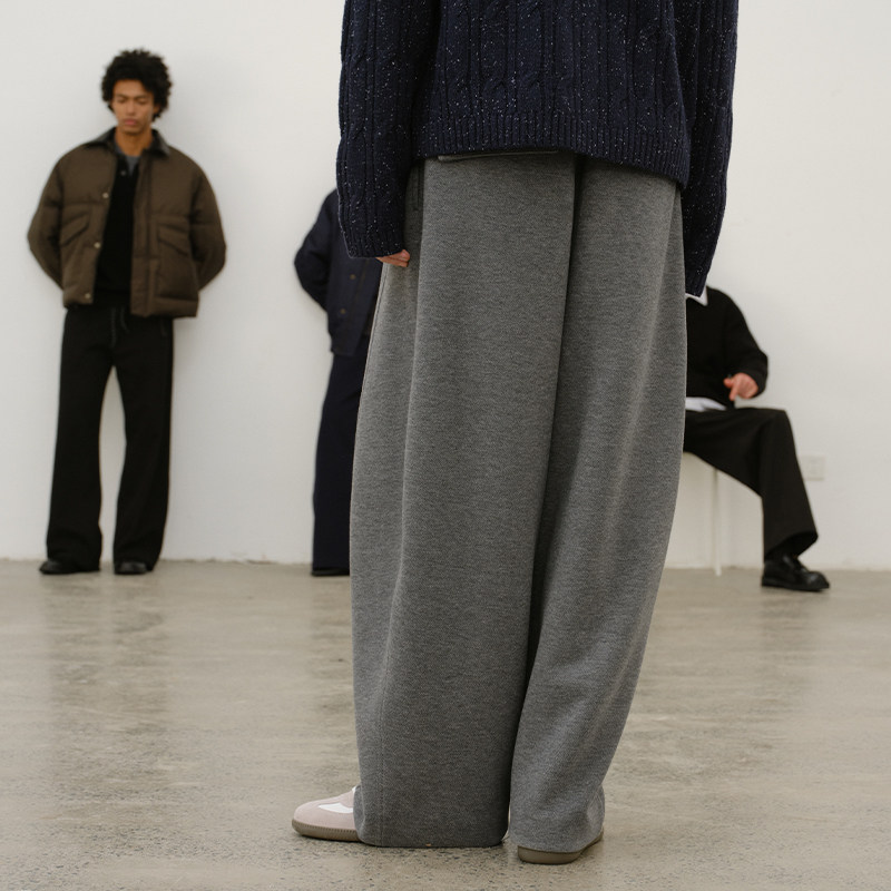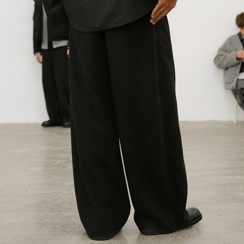 DUPU杜朴 秋冬厚实重磅经典弯刀羊蹄休闲裤 宽松垂感呢料阔腿长裤