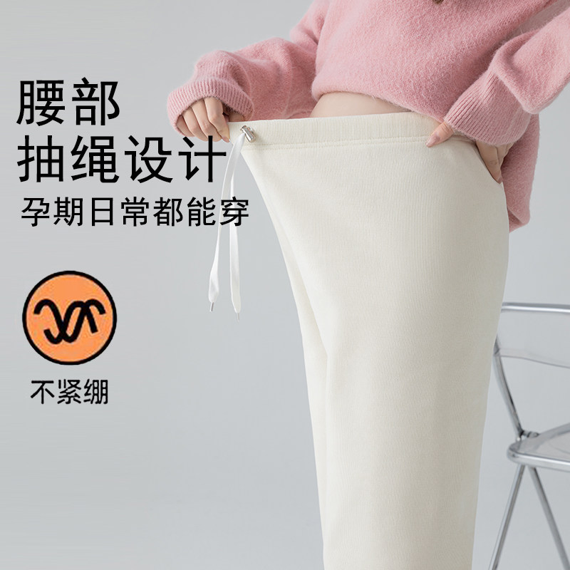 孕妇裤冬季加绒加厚2026新款羊羔绒直筒裤子时尚外穿秋冬款阔腿裤