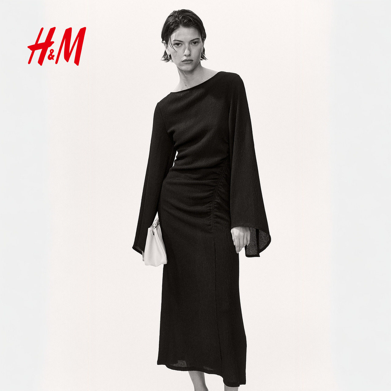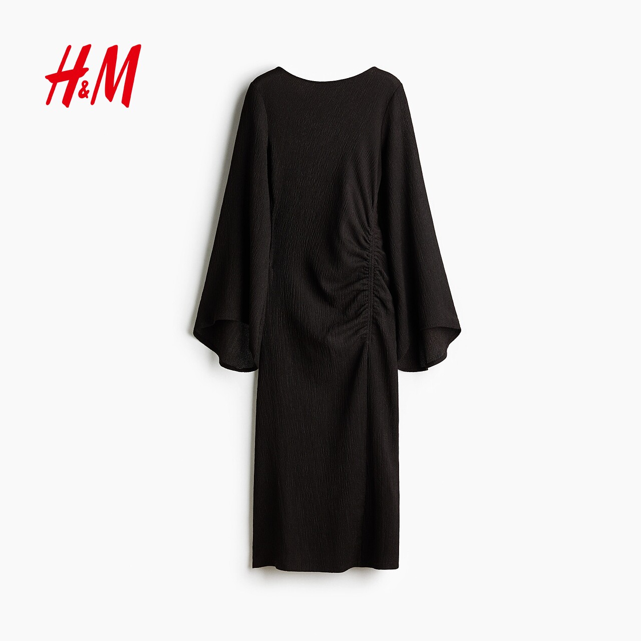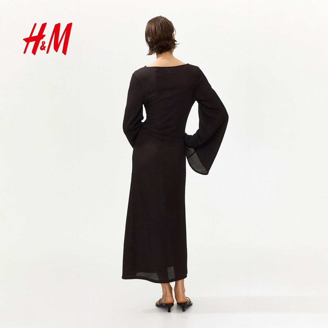 HM女装连衣裙2026春季新款时尚气质喇叭袖汗布改良礼服裙1334284