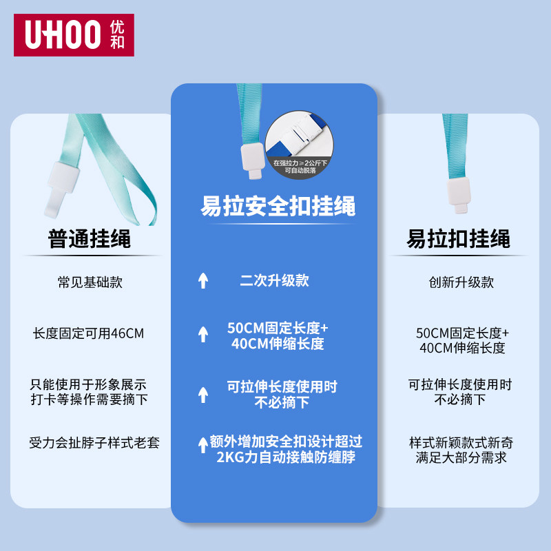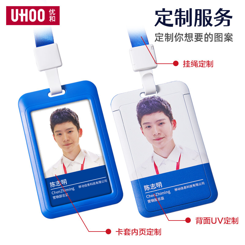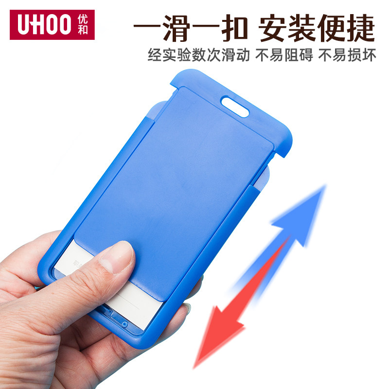 优和6056工作证卡套员工公交卡门禁卡工作证工牌厂牌可定制带挂绳打卡挂牌证件卡套工卡注塑工作证胸牌卡套