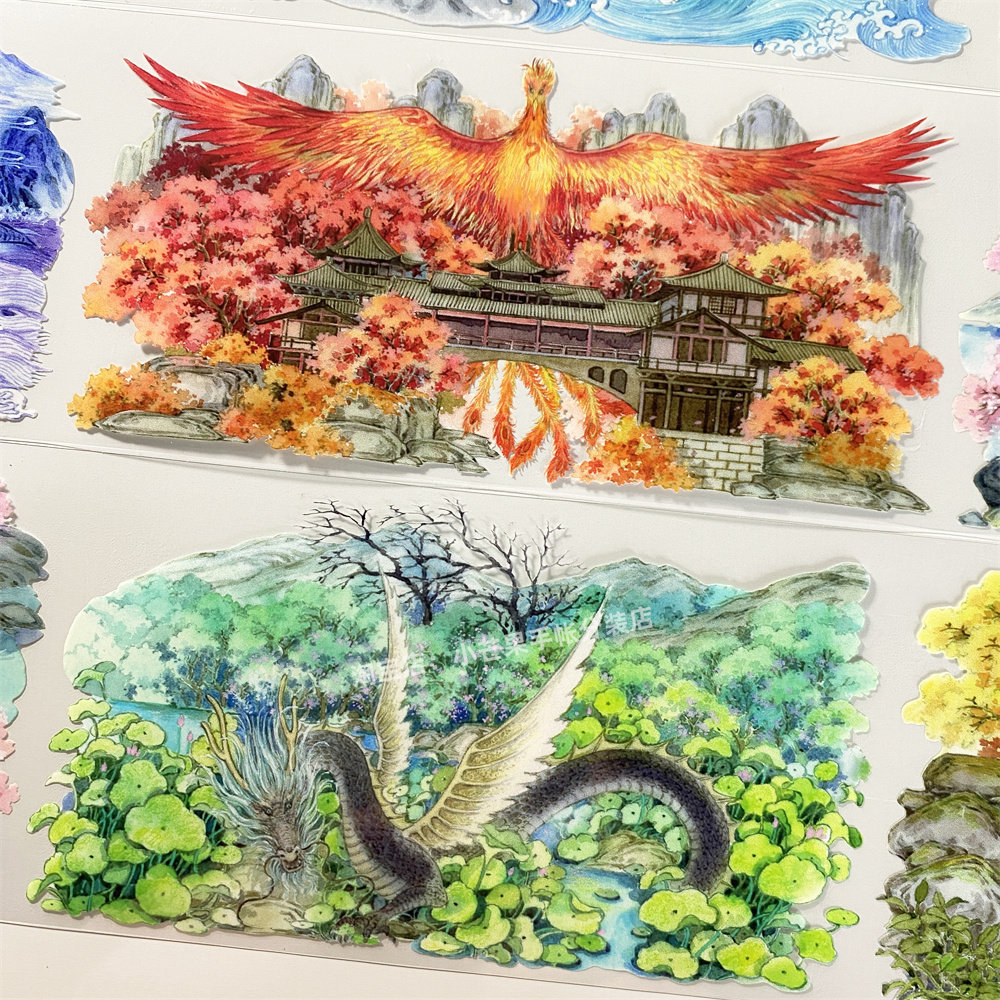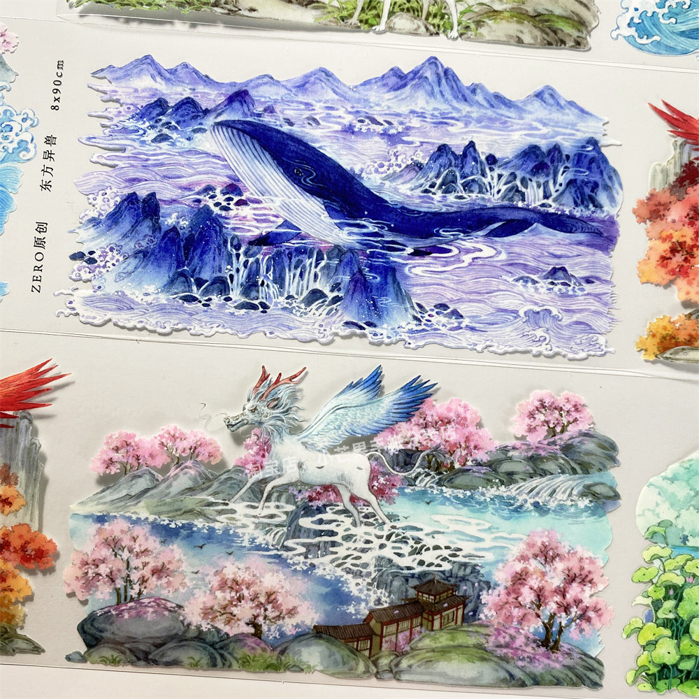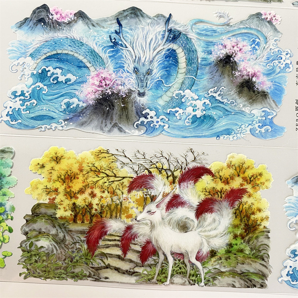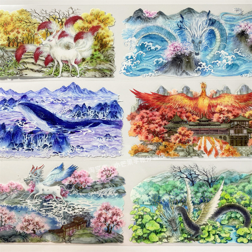 手帐分装胶带东方异兽zero凤凰龙狐狸鲲古风PET素材账流麻diy贴纸