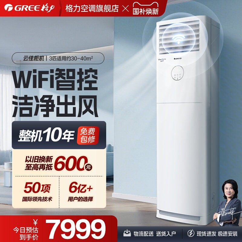 【Gree/格力官方】一级能效变频冷暖3匹客厅立式柜机家用空调云佳