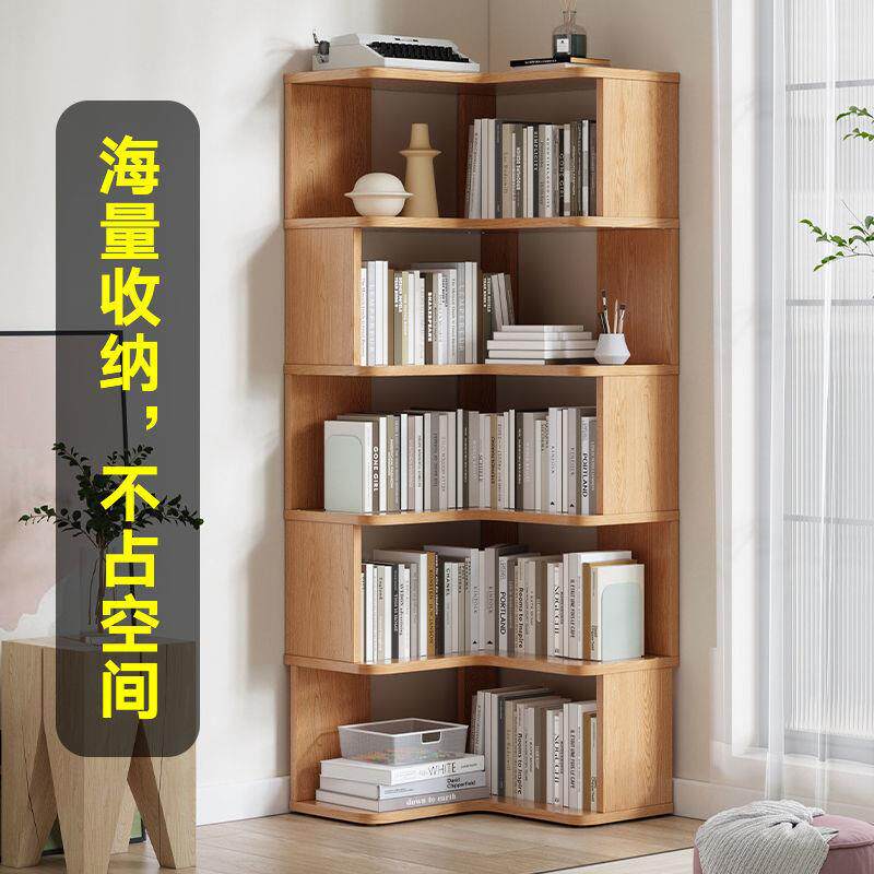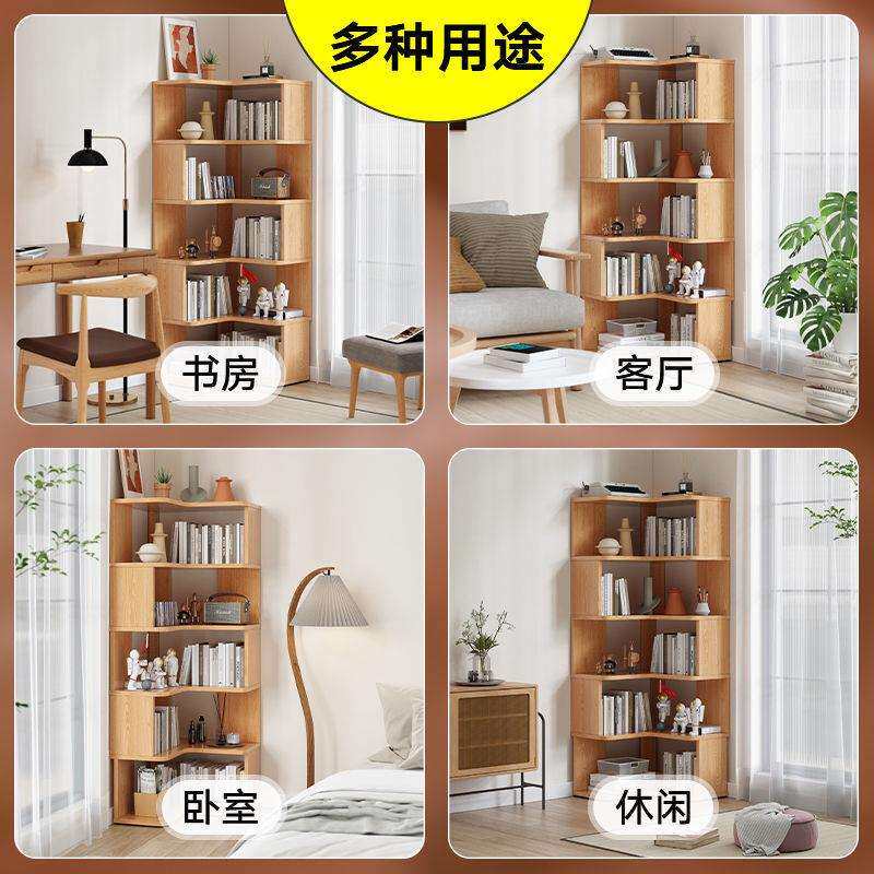 转角书柜书架落地靠墙实木拐角墙角角柜简易儿童置物架客厅办公室
