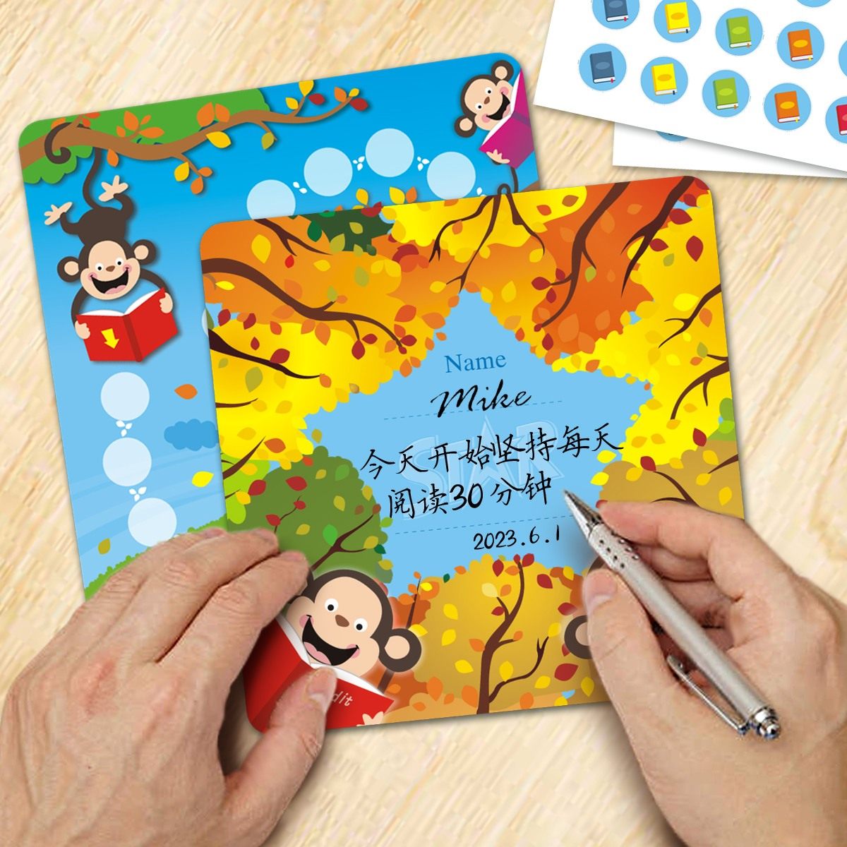 21天打卡可爱卡通学员儿童小学生目标自律积分卡培训学校教育舞蹈