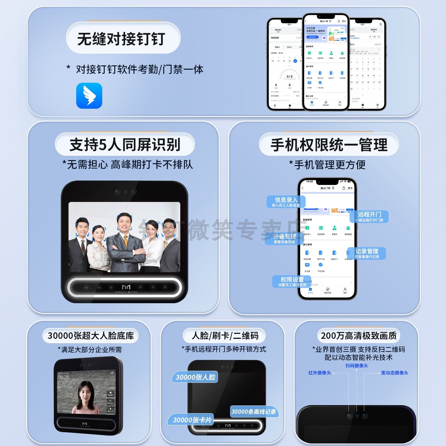 8寸大屏 人脸/刷卡 手机远程管理 访客会议