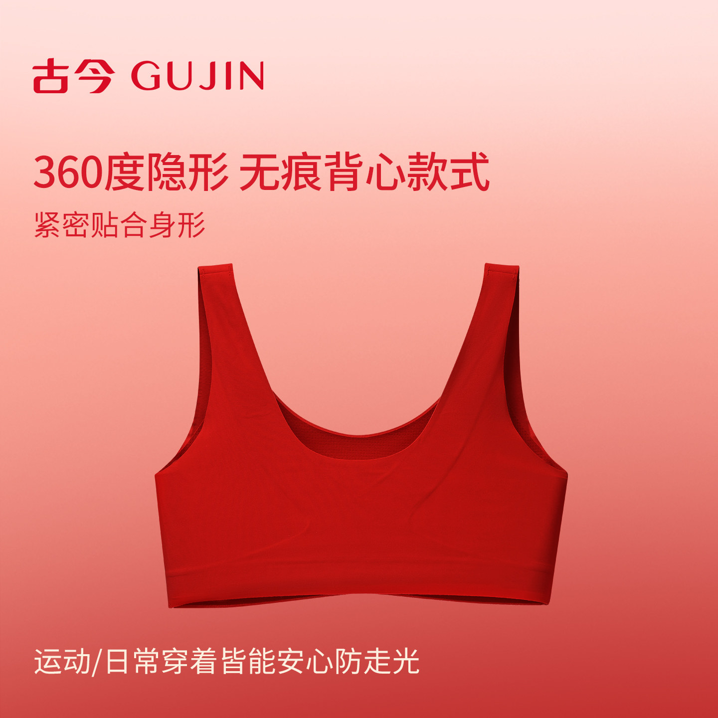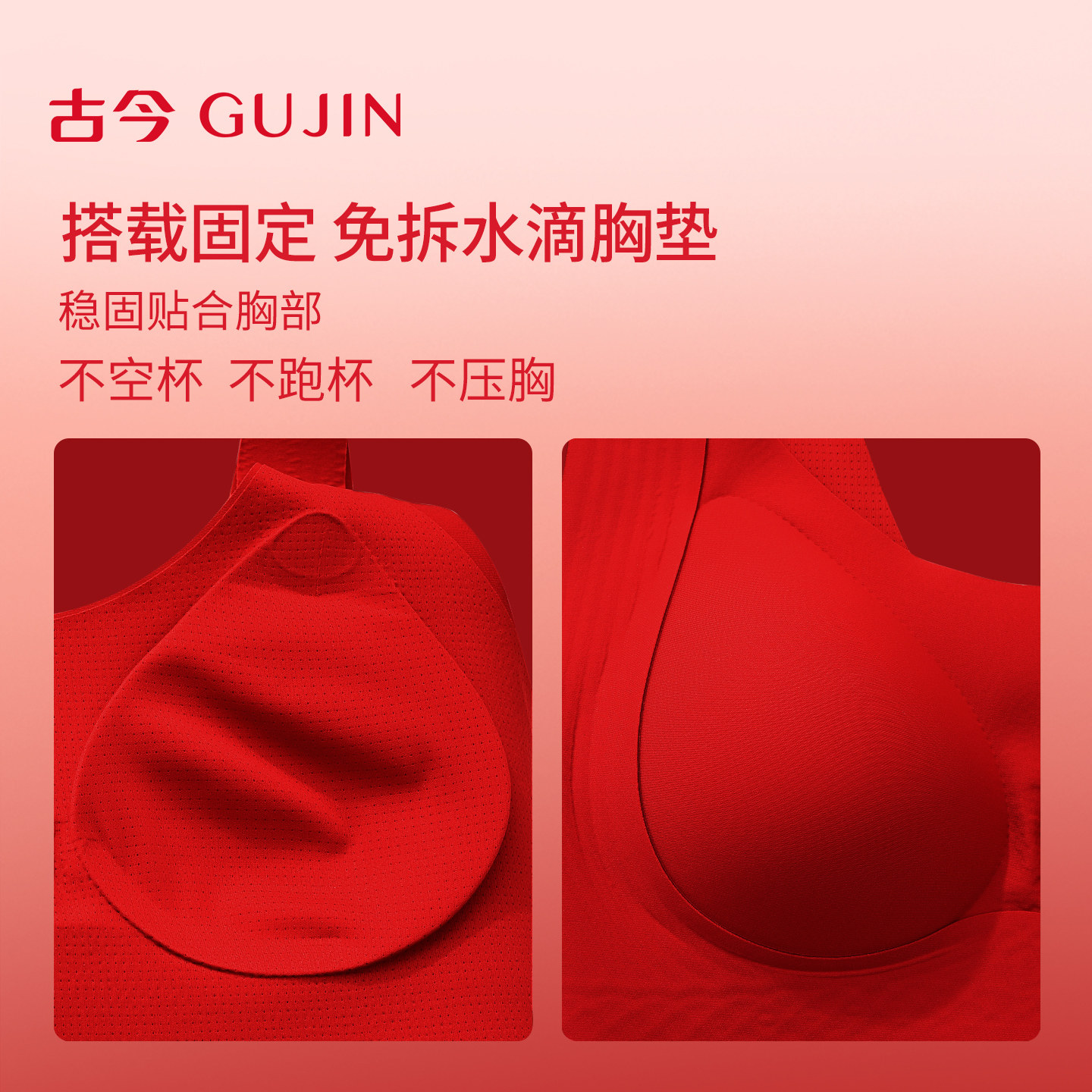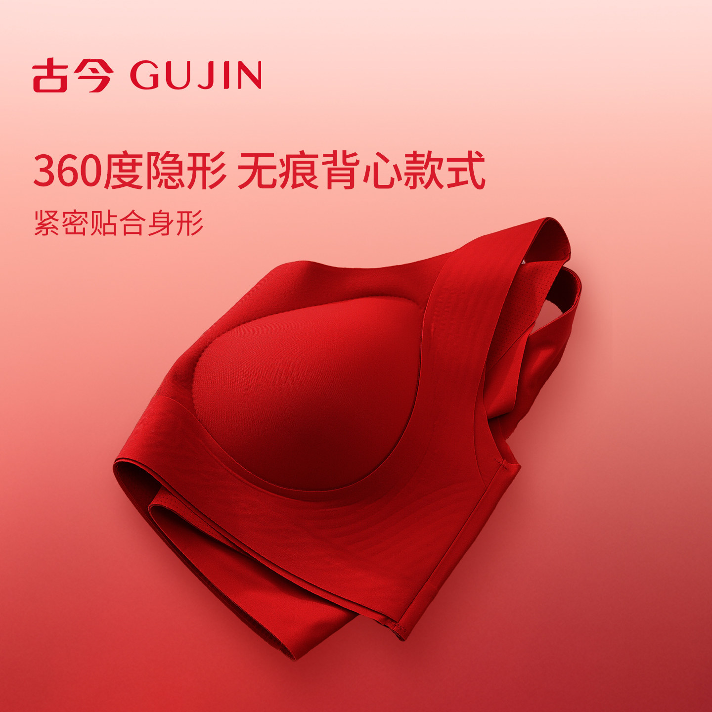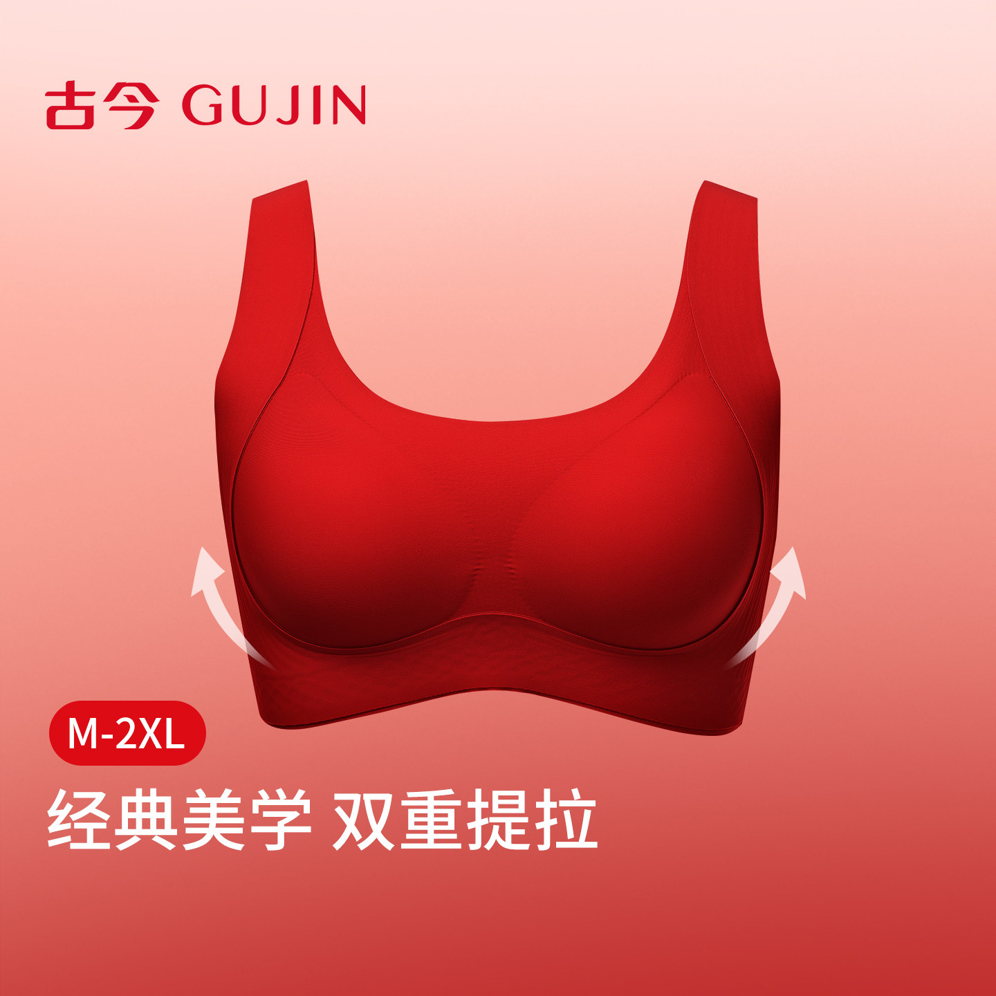 古今无痕内衣女大胸显小聚拢收副乳防下垂本命年红色文胸罩透气