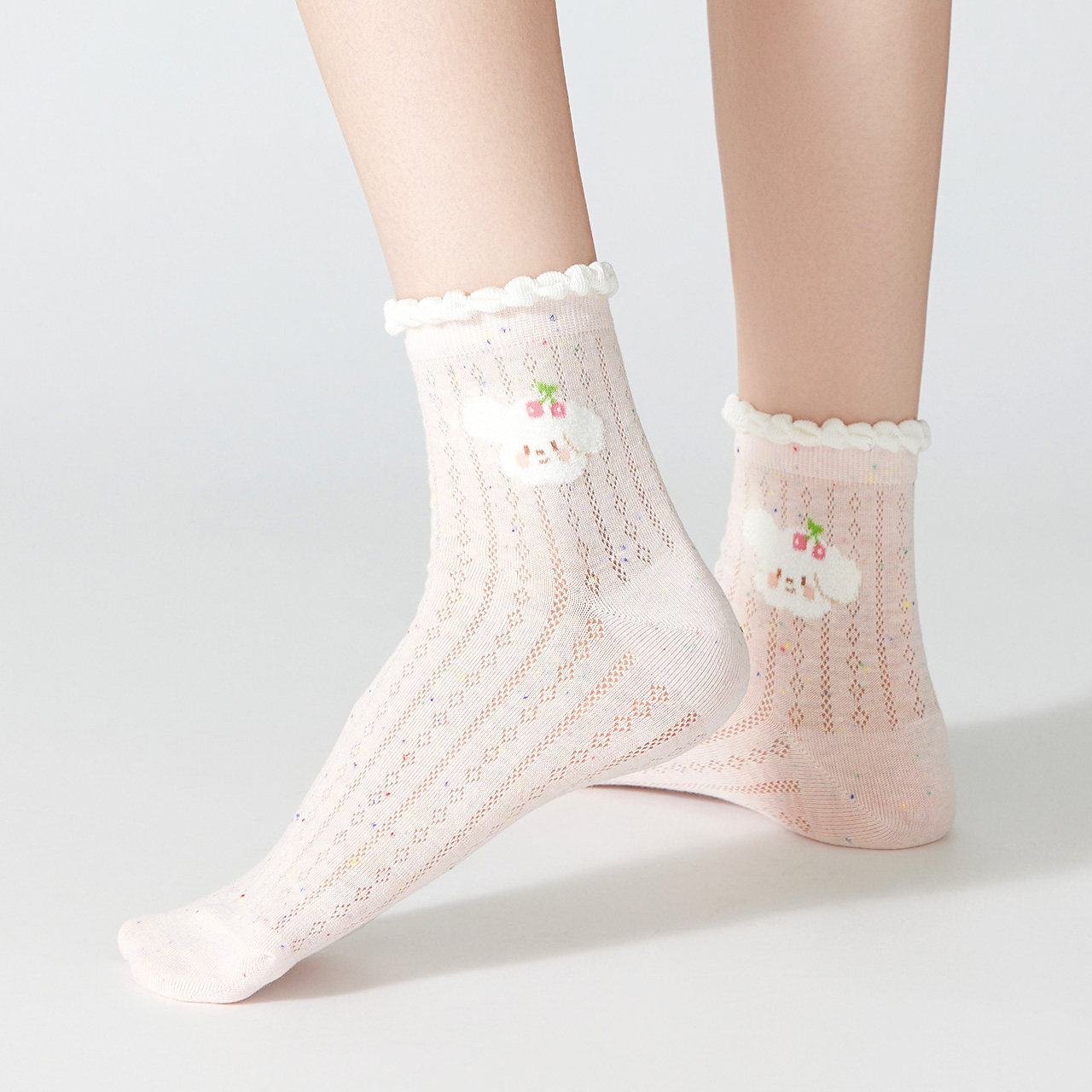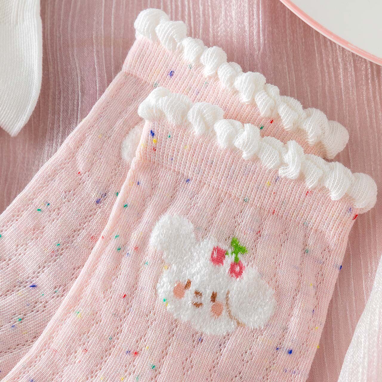 早春女袜2026新款粉色可爱少女卡通棉袜搭配小皮鞋中筒袜女士袜子