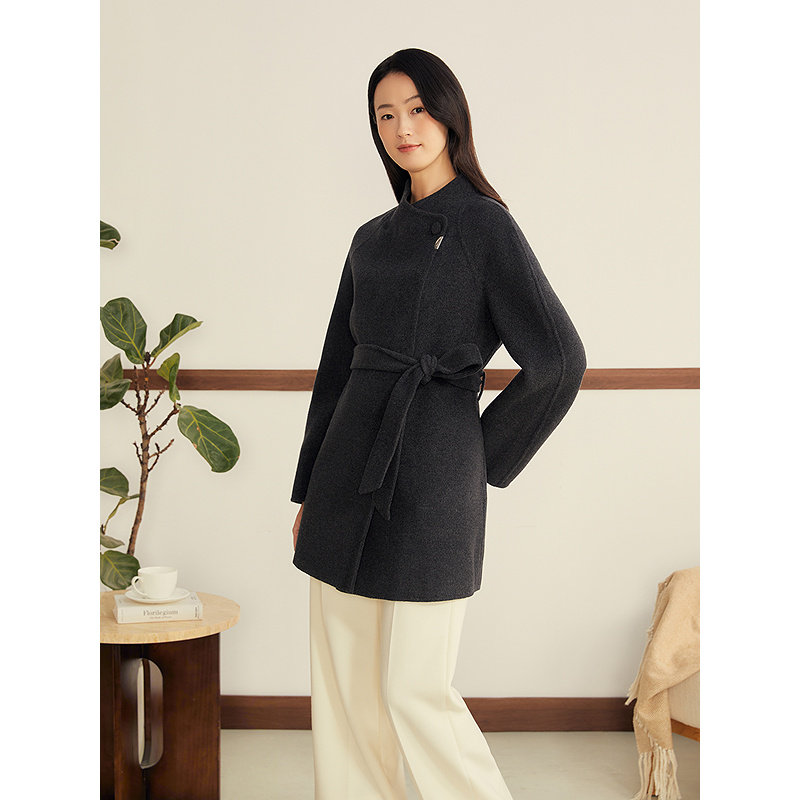 MPAM绵羊毛羊绒双面呢大衣时尚气质立领羊毛外套女