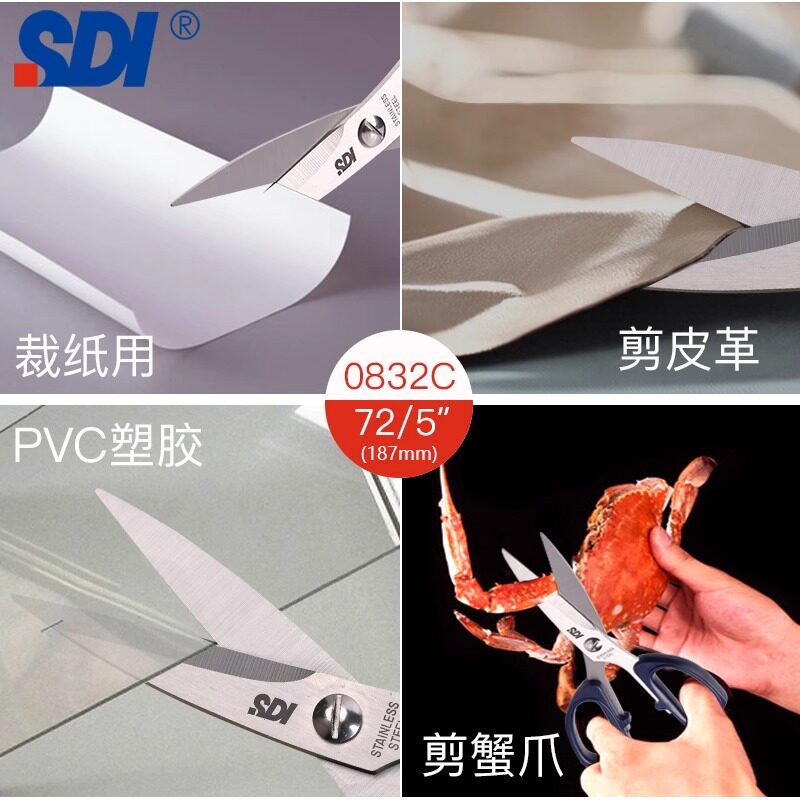 SDI手牌不锈钢剪刀多用途家用厨房辅食螃蟹剪刀办公学生手工剪子裁缝剪皮革胶皮工具0832C